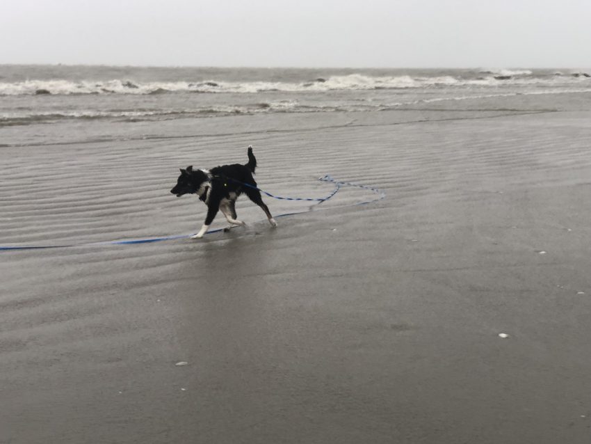 Vandaag is Porthos de eerste keer het strand op geweest op Schiermonnikoog